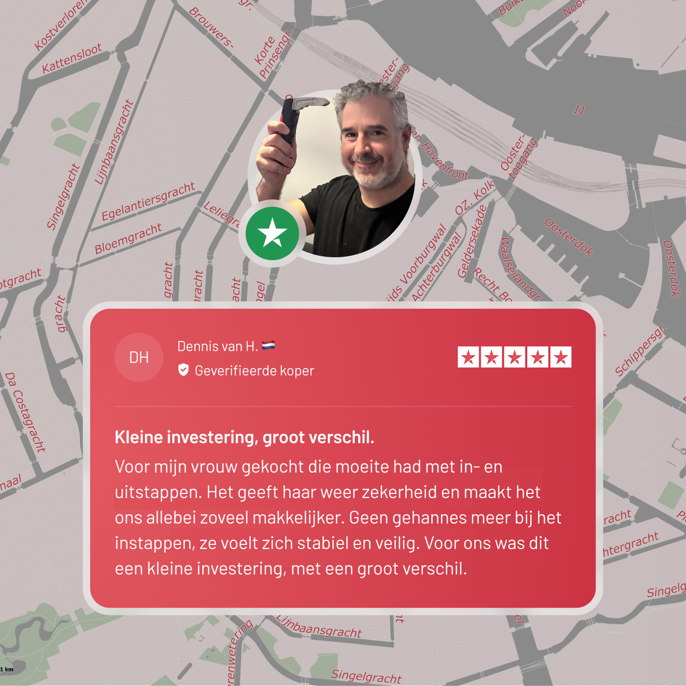 Met één simpele handgreep wordt in- en uitstappen comfortabeler, veiliger en volledig zonder hulp van anderen.
